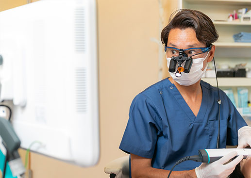 より正確な診査・診断を行うために歯科用CTや口腔内スキャナー(iTero)を活用しています。お口の状態を立体的に把握することで、見た目の美しさはもちろん、機能面も重視した治療を可能にしています。患者さまのご希望に寄り添いながら、精密さと安心感のある診療を心がけています。